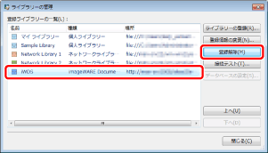 [登録ライブラリーの一覧]から登録を解除するライブラリーを選択して、[登録解除]をクリックします。