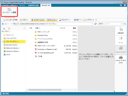 リボンの  (ライブラリーの管理)をクリックします。