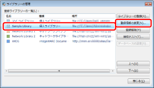 ライブラリーの登録情報の変更ダイアログボックスが表示されます。