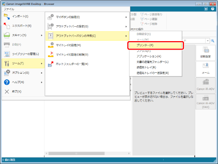 Windowsのプリンターのプロパティー画面でプリンターアウトプットボタンに登録されているプリンターのプリンター名を変更した場合、プリンターアウトプットボタンを使用した印刷ができなくなります。プリンター名を変更した場合は、プリンターアウトプットボタンの設定でプリンターを選択し直してください。
