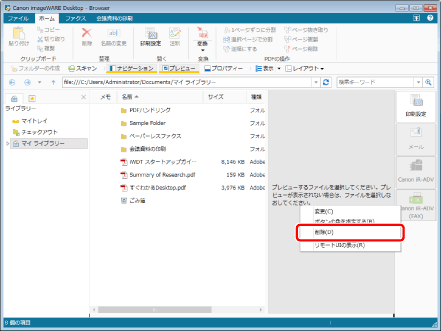 または、[ファイル]メニュー > [ツール] > [アウトプットバーの設定] > (ファクス名) > [削除]を選択します。