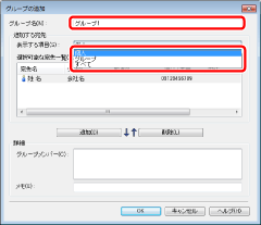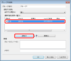 追加した宛先を[グループメンバー]から削除するには、宛先を選択して、[削除]をクリックします。