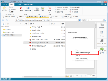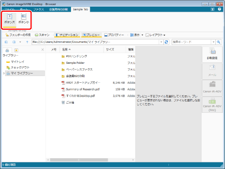 (ボタン大)、または (ボタン小)をクリックDesktop Browserのリボンにコマンドが表示されていない場合は、次を参照して表示させてください。