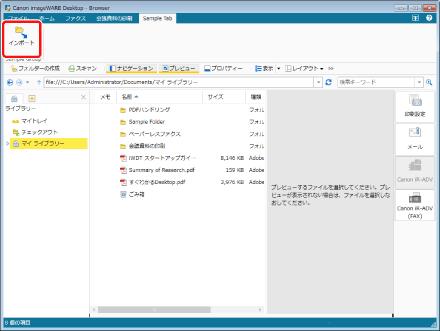 ライブラリーに、Windows上の文書やフォルダーをインポートして登録できます。