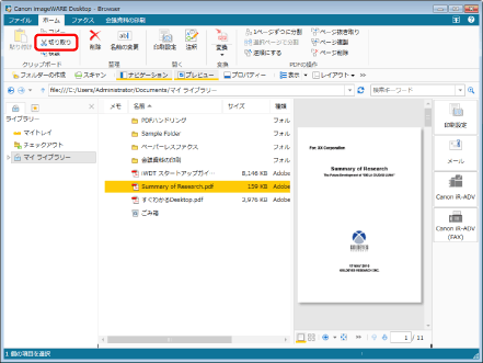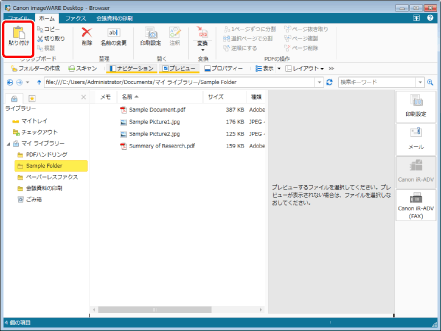 ツールバーのツールボタンでも同じ操作ができます。Desktop Browserのツールバーにツールボタンが表示されていない場合は、次を参照して表示させてください。