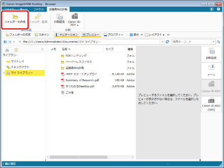 ツールバーのツールボタンでも同じ操作ができます。Desktop Browserのツールバーにツールボタンが表示されていない場合は、次を参照して表示させてください。