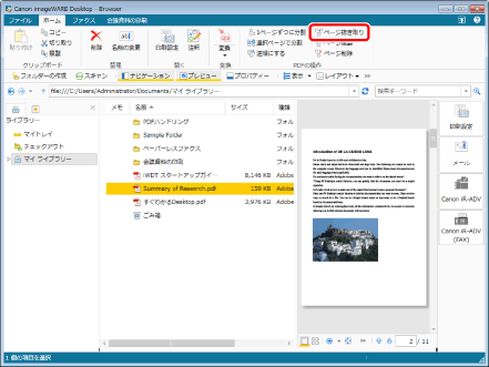 複数ページで暗号化されていないPDF文書のみ、選択ページの抜き取りができます。