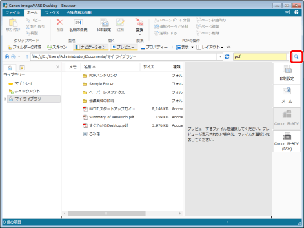 選択したライブラリーやフォルダーの中のすべてのフォルダーを検索します。ただし、Document Serverライブラリーのフォルダー名については、簡易検索バーによる検索の対象外となります(フォルダー内の文書は検索対象です)。Document Serverライブラリーのフォルダー名を検索する場合は、詳細検索で検索してください。