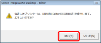 (印刷)の 、または詳細ウィンドウの ただし、[印刷/ファクス送信ダイアログを表示する]のチェックマークが外れている場合に、注釈を非表示にした状態で操作を行った場合は、確認メッセージが表示されます。注釈を印刷する場合は、[注釈を付けて印刷]をクリックします。