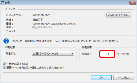 [印刷/ファクス送信ダイアログを表示する]にチェックマークが付いている場合は、[印刷]ダイアログボックスが表示されます。[印刷]ダイアログボックスを使用して文書を印刷する方法については、次を参照してください。