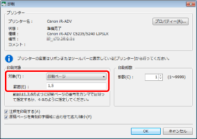 出力用紙サイズの設定で[自動(サイズ)]が選択されている場合、[イメージを縮小する用紙サイズ]で指定された用紙サイズに合わせてイメージが縮小されます。ただし、イメージの形状によっては、指定された用紙サイズと、印刷時に選ばれる用紙サイズが異なる場合があります