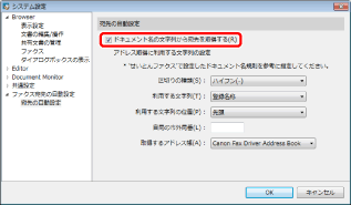 [システム設定] > [ファクス宛先の自動設定] > [宛先の自動設定] > [ドキュメント名の文字列から宛先を取得する]