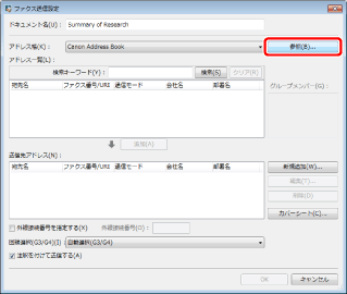 [送信先アドレス]に追加されたアドレスを選択して[編集]をクリックすると、[送信先アドレスの編集]ダイアログボックスが表示され、選択したアドレスを編集できます。