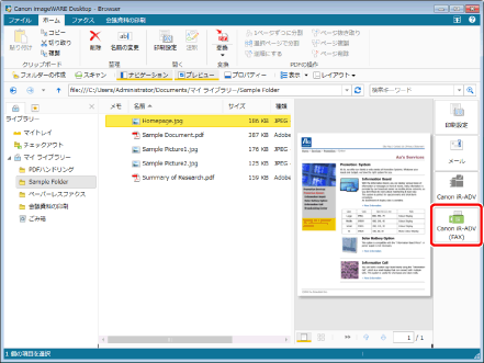 複数の文書を選択した場合は[印刷]を使用できません。この場合は、ファクスアウトプットボタンを使用してファクス送信してください。