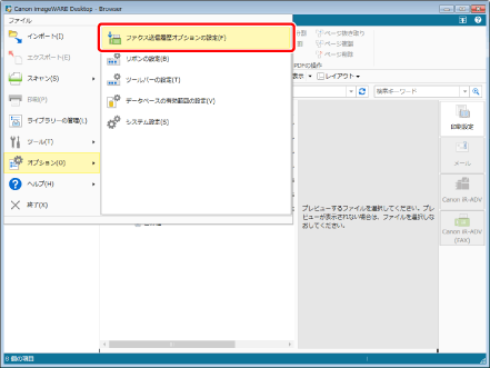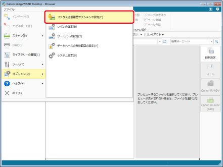 [ファイル]メニュー > [オプション] > [ファクス送信履歴オプションの設定]