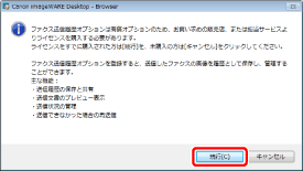 ライセンス認証済みのファクス送信履歴オプションを別のコンピューターで使用するには、ライセンスの返却、またはライセンスの転送をしてから、再度ライセンス認証を行う必要があります。詳細については、『imageWARE ソフトウェア ライセンス認証ガイド』を参照してください。
