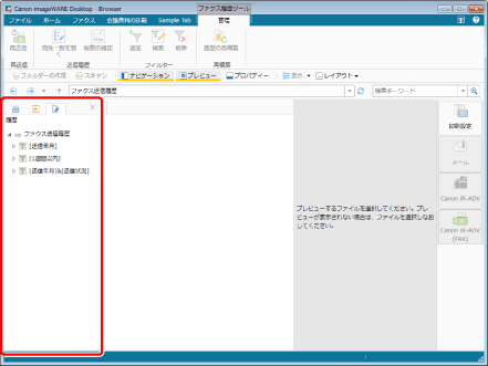作成された「Fax」フォルダー内のフォルダーやファイルをWindowsエクスプローラーで変更した場合、ファクス送信履歴オプションの動作は保証されません。