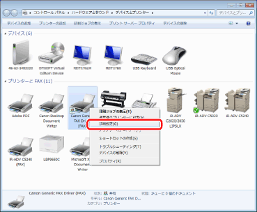 デバイスが、インストールされているCanon Generic FAX Driverに対応している