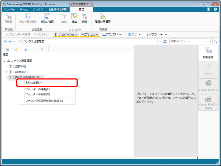 [ファクス送信履歴]のフィルターの名前を変更できます。