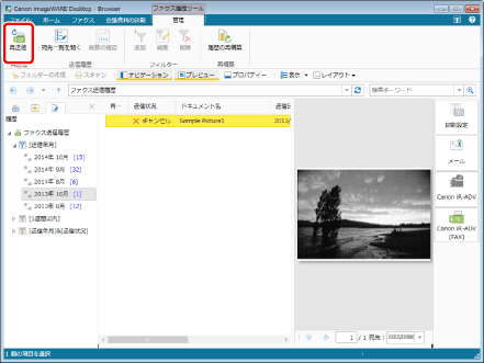 送信履歴からファクスを再送する場合、送信履歴情報に含まれている画像を使用して再送します。