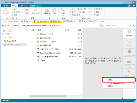 をクリックして、[変更]を選択しても同じ操作ができます。リボンやツールバーにボタンが表示されていない場合は、次を参照して表示させてください。 |