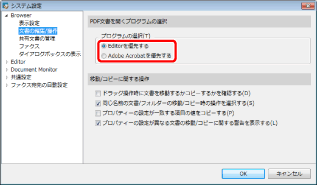 Desktop BrowserからPDF文書を開く際に、Desktop Editorを起動して開くか、他のPDF文書用アプリケーションを起動して開くかを設定できます。