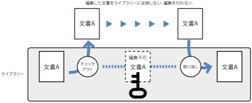 チェックアウトは、他のユーザーがその文書を編集できない状態にする処理です。