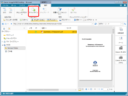 未接続のDocument Serverライブラリー内の文書を選択する場合は、ライブラリーへの接続が必要です。接続方法については、次を参照してください。
