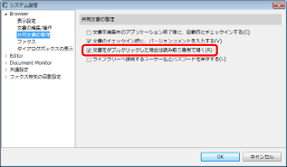 [システム設定] > [Browser] > [共有文書の管理] > [文書をダブルクリックした場合は読み取り専用で開く]