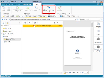 ファイルリストビューウィンドウにDocument Serverライブラリーの中の項目が表示されます。