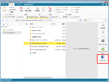 アプリケーションアウトプットボタンから文書を編集するためには、あらかじめアウトプットバーに外部アプリケーションが登録されている必要があります。アウトプットバーへの外部アプリケーションの登録については、次を参照してください。