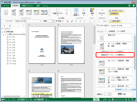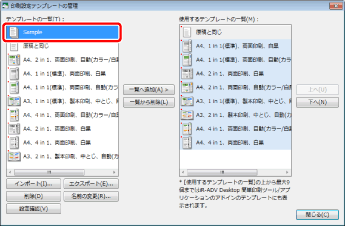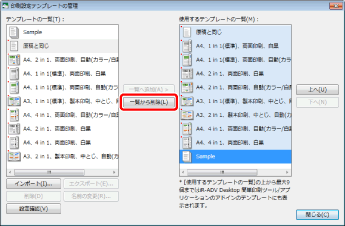 詳細ウィンドウの[テンプレート]タブで、削除するテンプレートのボタンを右クリックして[一覧から削除]を選択