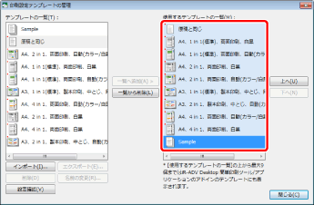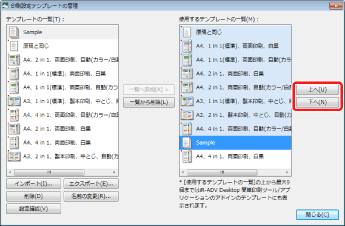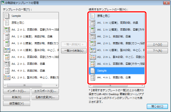詳細ウィンドウの[テンプレート]タブで、テンプレートのボタンを上下にドラッグ&ドロップして表示順を変更することもできます。