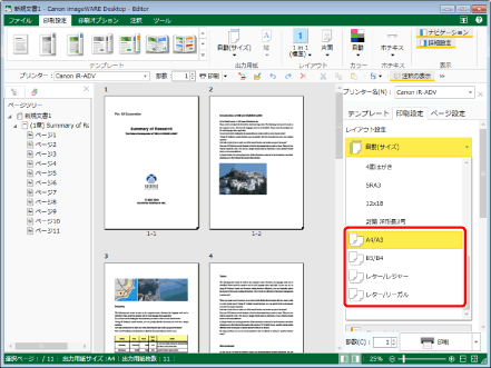 サイズの異なる用紙を組み合わせて印刷するには、この機能に対応したプリンターを選択する必要があります。