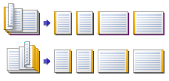 ページ集約の設定で[1 in 1(標準)]以外を選択している場合、同じ面の先頭の原稿のサイズで用紙サイズが判定されます。