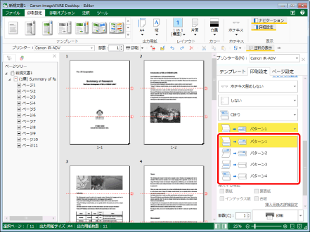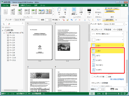キヤノン製プリンターを選択し、詳細ウィンドウの[印刷設定]タブ、リボンのコマンド、ツールボタンのいずれかで、[Editorの印刷設定を使用]にチェックマークを付けた場合に設定できます。