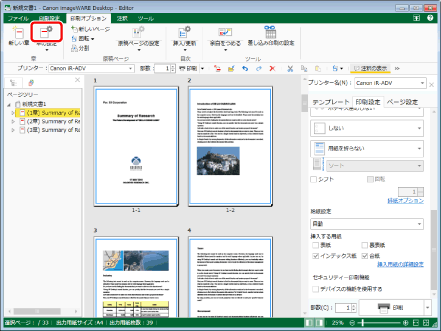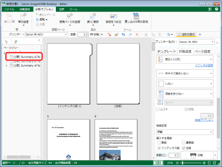 文書全体に合紙を挿入する設定かつ、[挿入する用紙の設定]ダイアログボックスで、[合紙に原稿を印刷する]にチェックマークが付いている