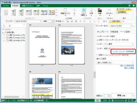 (原稿ページのヘッダー/フッターの詳細設定)をクリック