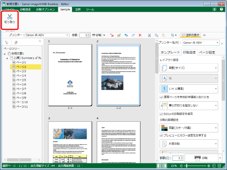切り取ったページは別の文書に貼り付けられます。