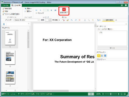 1つの差し込み印刷設定モード画面で、1つの文書を編集対象とします。