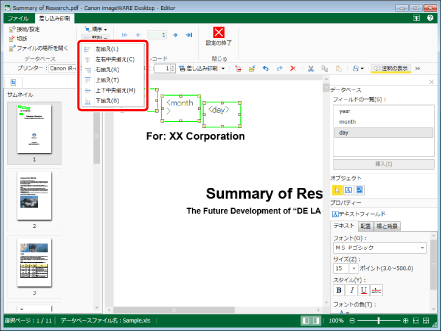 Desktop Editorの差し込み印刷設定モードで挿入したフィールドの位置を揃えられます。