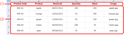 データベースファイルのフィールドの次の行以降がレコードになります。