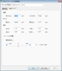 クリックすると、[テキストフィールドの詳細設定]ダイアログボックスが表示されます。[テキストフィールドの詳細設定]ダイアログボックスでは、テキストフィールドの詳細を設定できます。詳細は次を参照してください。