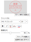 インストール時に自動的に登録されたテキストスタンプの他、新規に追加登録したテキストスタンプを挿入できます。詳細は次を参照してください。