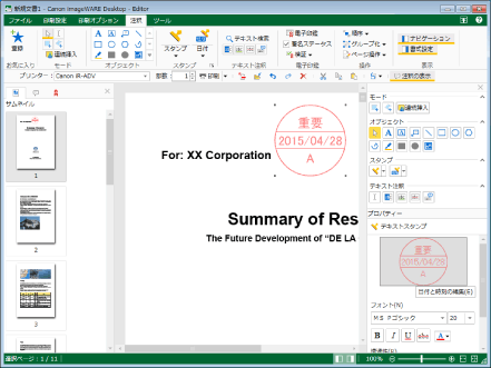 挿入したテキストスタンプの大きさを変更する場合は、詳細ウィンドウでフォントサイズを変更します。