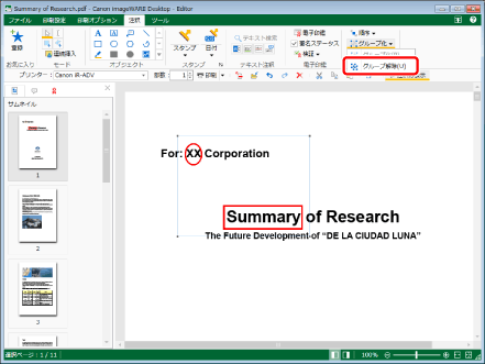 (グループ化)をクリックして、[グループ解除]を選択します。