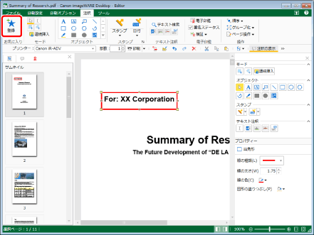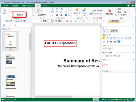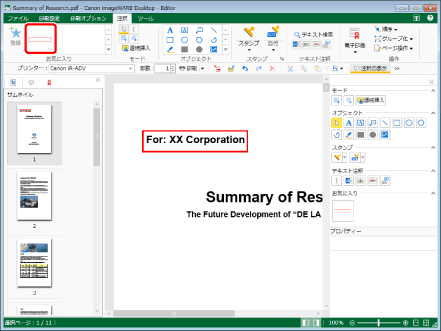リボン、および詳細ウィンドウのお気に入り一覧には、登録した注釈の縮小版がボタンとして登録されます。