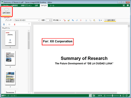 文書に追加した注釈の表示/非表示を切り替えられます。