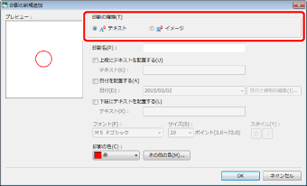 [テキスト]を選択した場合、円囲み+指定した文字列+日付の印影を登録できます。