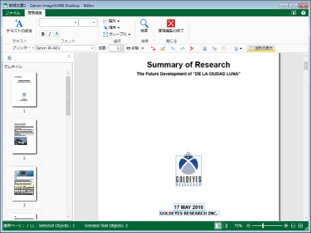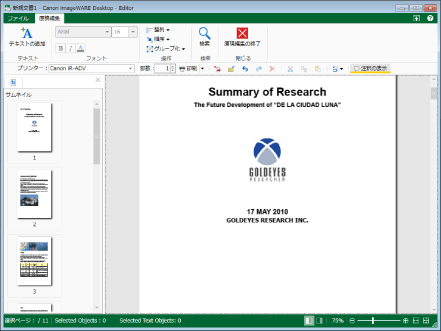 ワークウィンドウでオブジェクトを選択すると、選択されているオブジェクト総数とテキストオブジェクト数がステータスバーに表示されます。